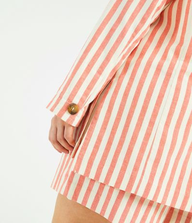 Blazer em Linho Listrado Curve & Plus Size Vermelho - Renner