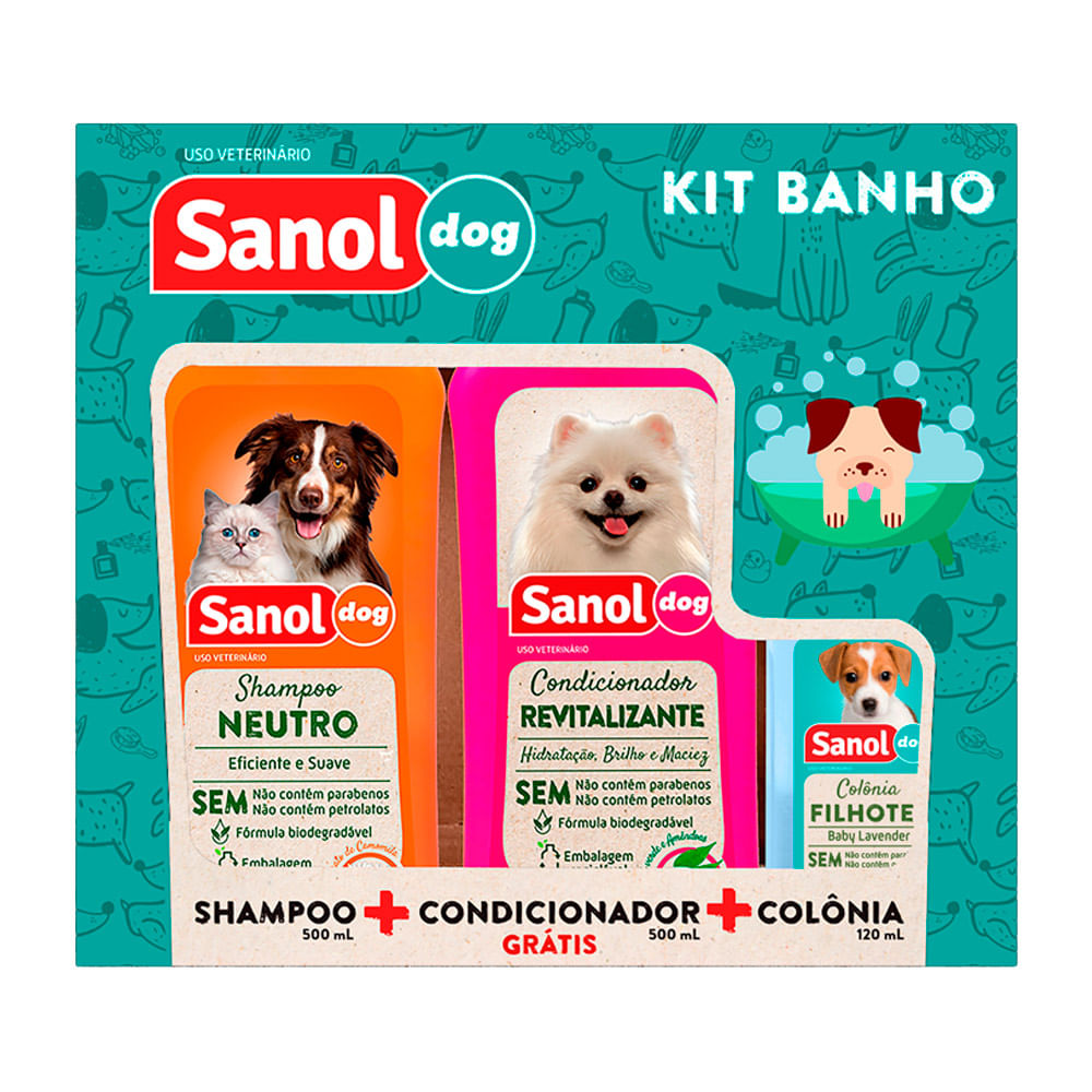 Kit Shampoo, Colônia e Condicionador Sanol Dog