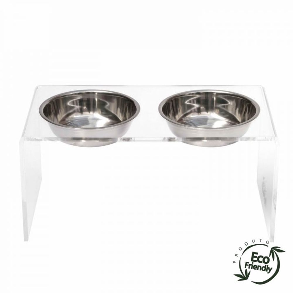 Bebedouro e Comedouro Duplo Inox e Acrílico PetBamboo em acrílico transparente - Cobasi Pet Shop - Cobasi