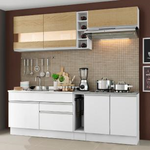 Cozinha Completa Madesa Parma com Armário e Balcão (Sem tampo e Pia) - Branco/Branco/Saara - Camicado