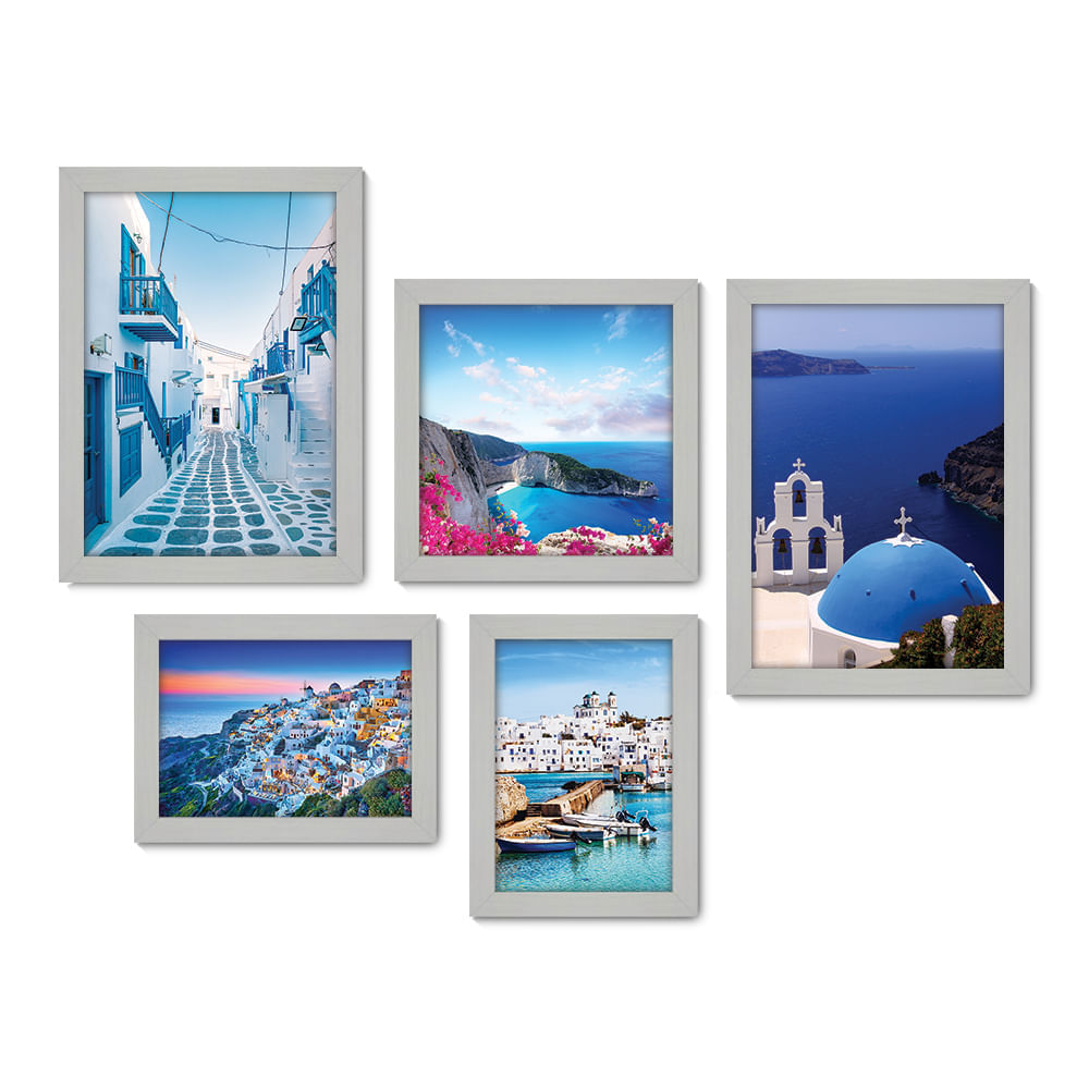 Kit Com 5 Quadros Decorativos - Grécia - Mykonos - Santorini - Mar - Viagem - 354kq01b - Cobasi