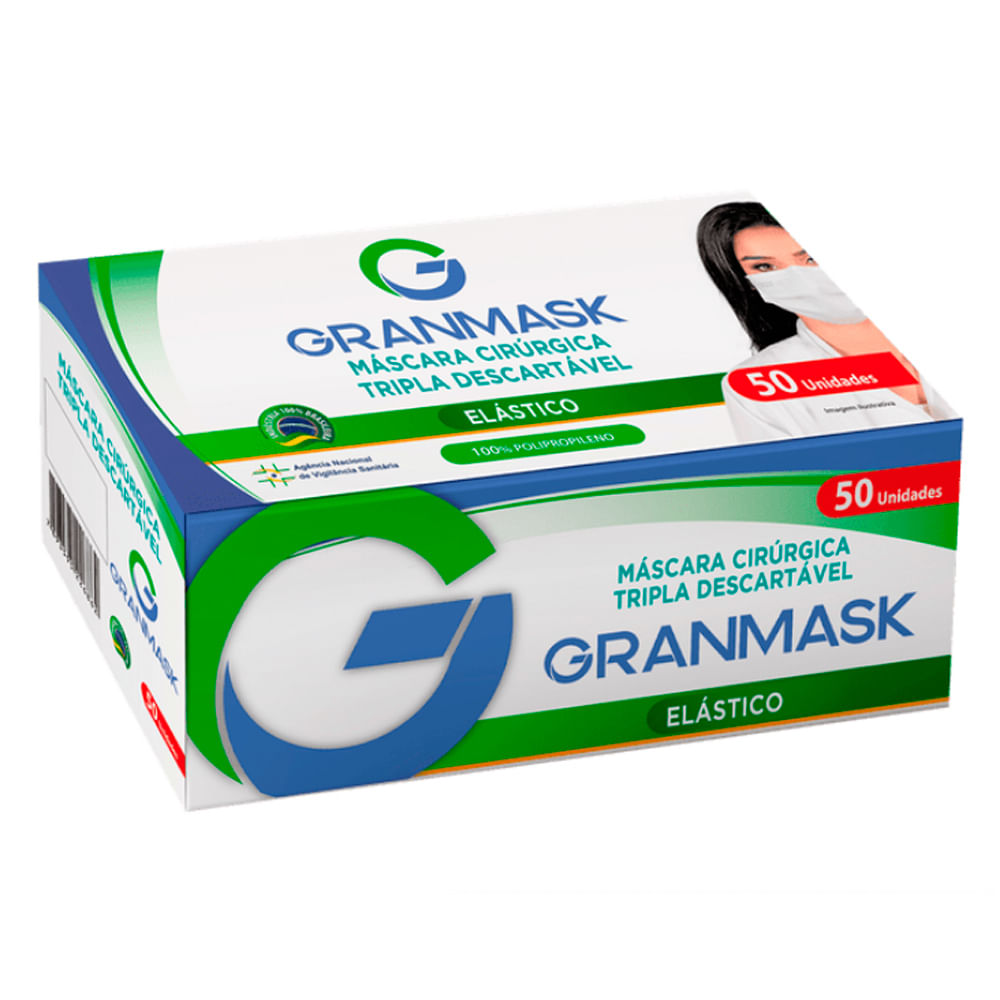 Máscara Descartável Granmask Tripla Camada Branca com Elástico 50 Unidades | Drogaria Arau - Drogaria Araujo