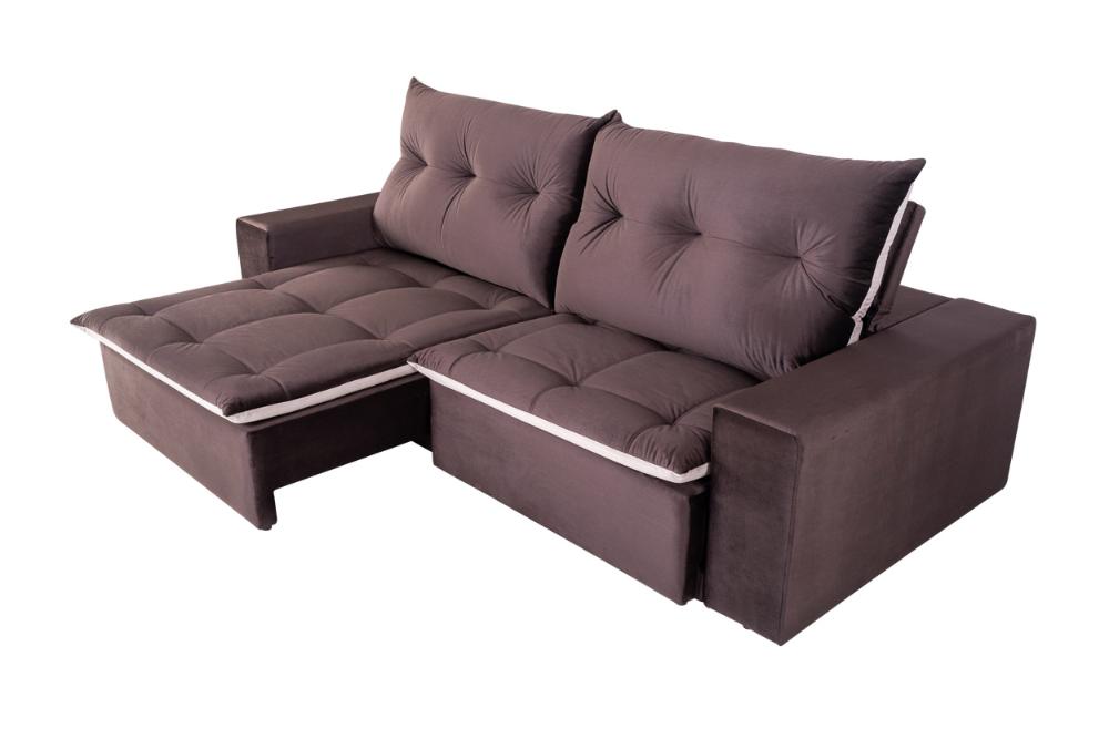 Sofá 4 Lugares Miró Com Pillow 2,50m Retrátil e Reclinável Veludo Premium Chocolate com Bege