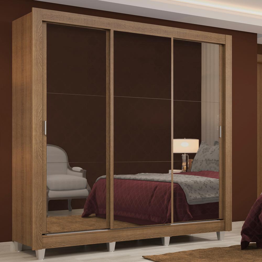 Guarda Roupa Casal Madesa Lyon 3 Portas de Correr de Espelho 2 Gavetas com Pés