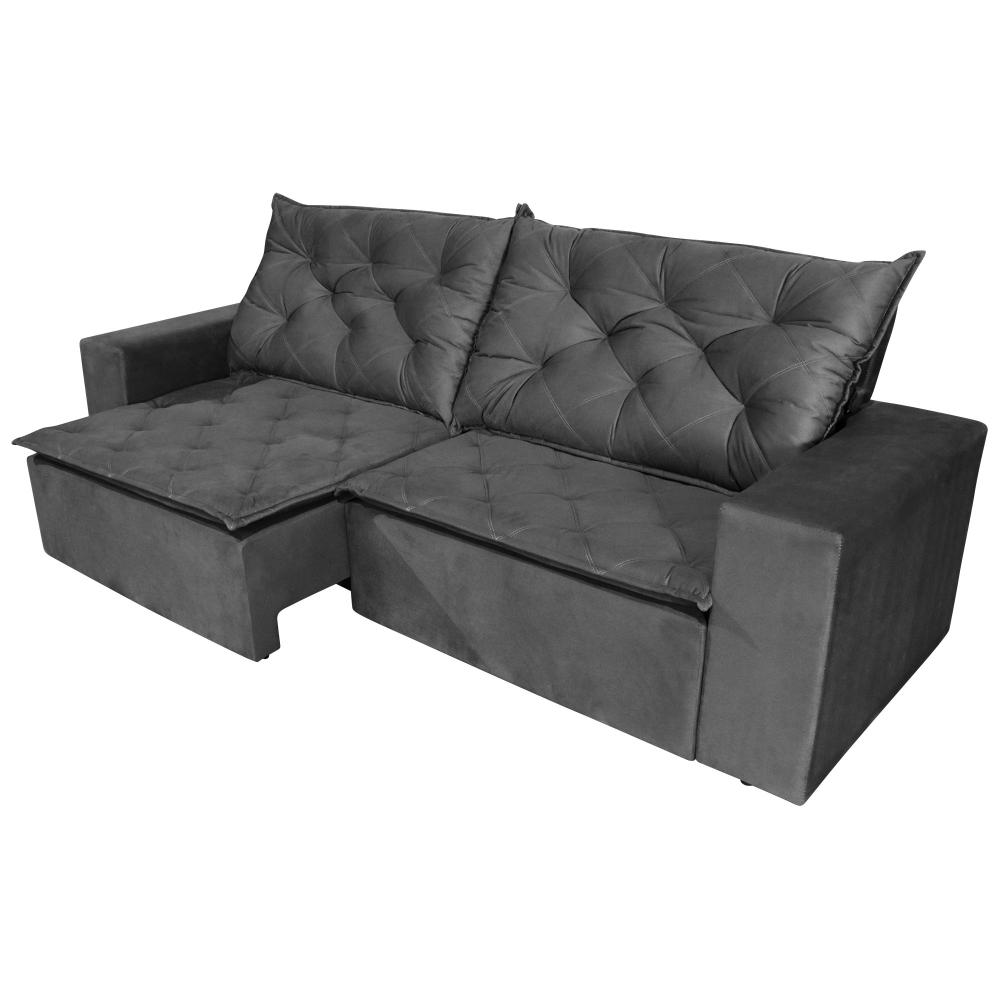 Sofá 3 Lugares Quality com Pillow Retrátil e Reclinável 2,10m Veludo Grafite