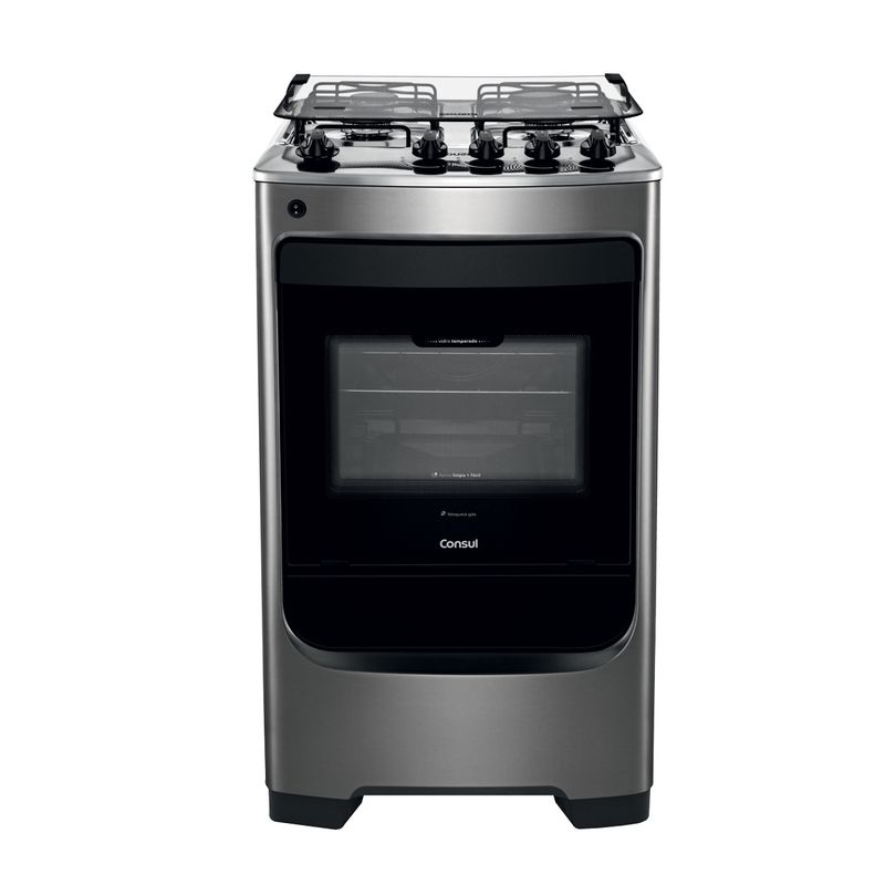 Fogão Consul 4 bocas cor inox com acendimento automático - CFO4NAR Bivolt