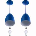 Kit 2 Lustre Pendente Cone De Alumínio 20x14cm Azul + Lampada - Camicado