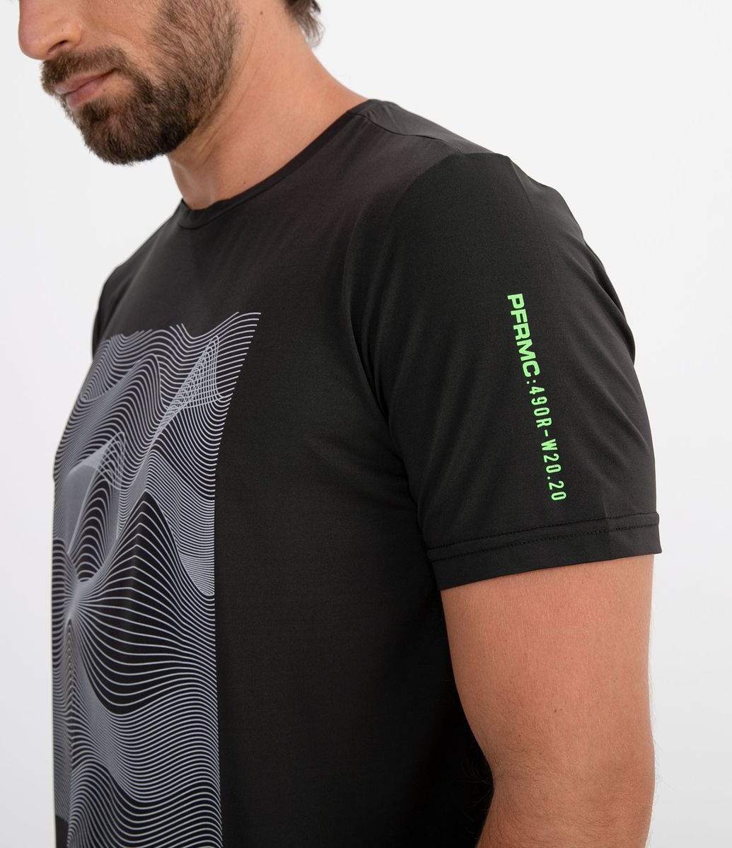 CAMISETA ESPORTIVA MANGA CURTA COM ESTAMPA ONDULAR PRETO