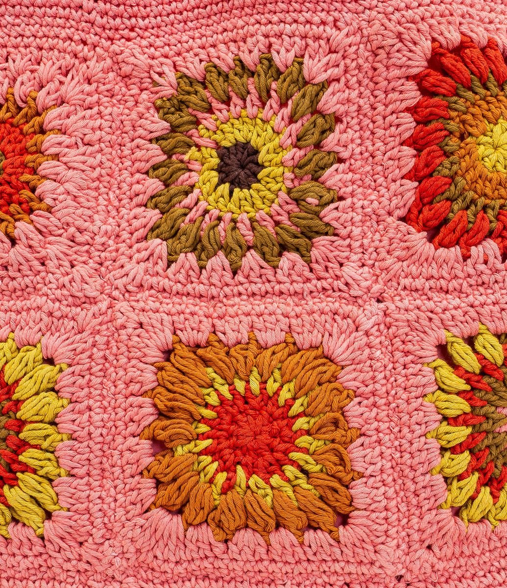 BOLSA GRANDE COM FLORES EM CROCHÊ COLORIDAS ROSA