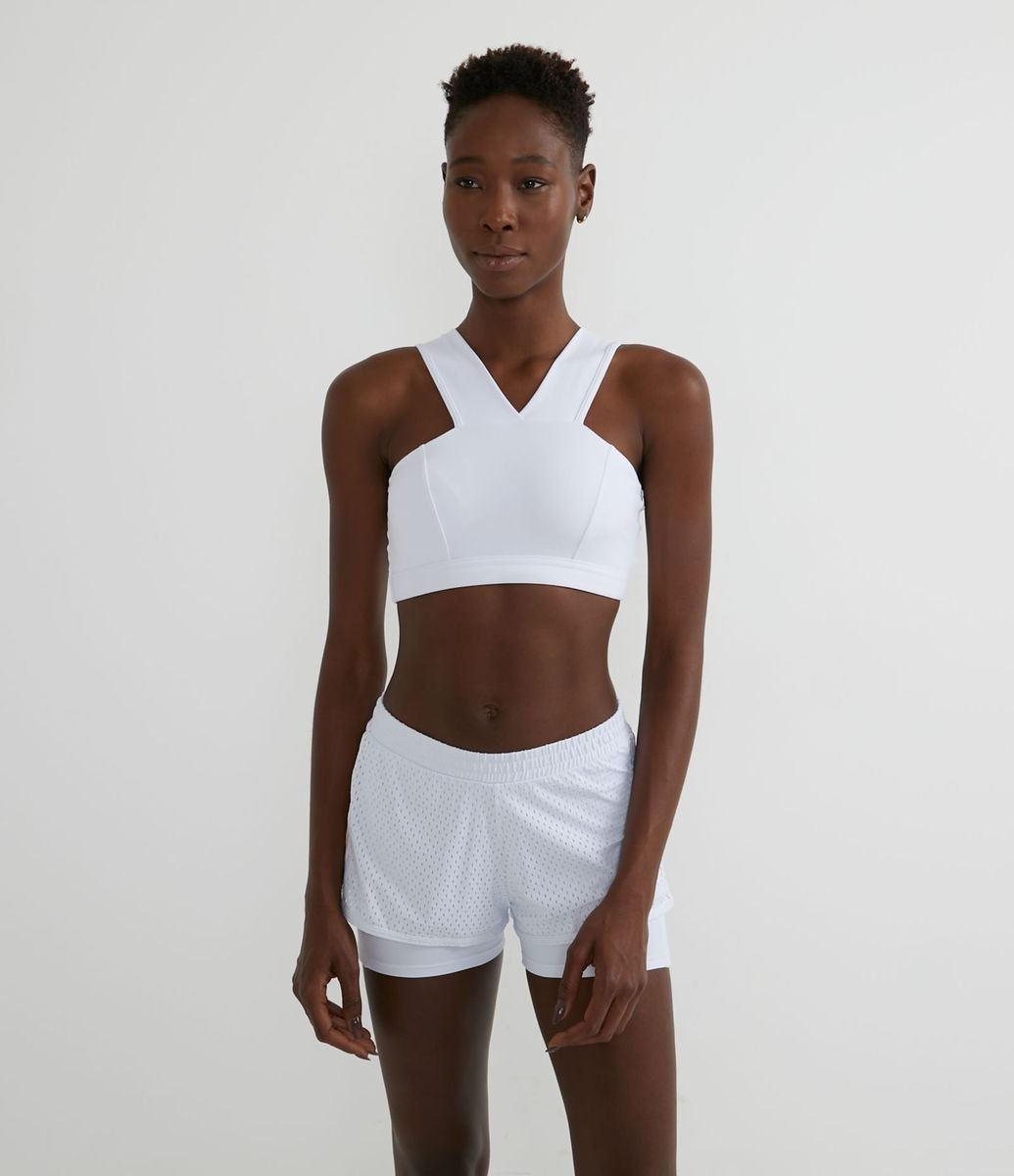 SHORT SAIA ESPORTIVO EM POLIAMIDA COM RECORTES TRANSVERSAIS BRANCO