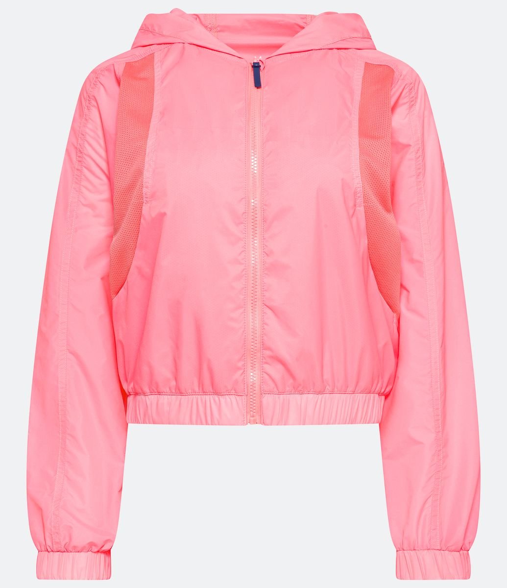 JAQUETA CORTA-VENTO ESPORTIVA COM CAPUZ E RECORTES EM TELA ROSA