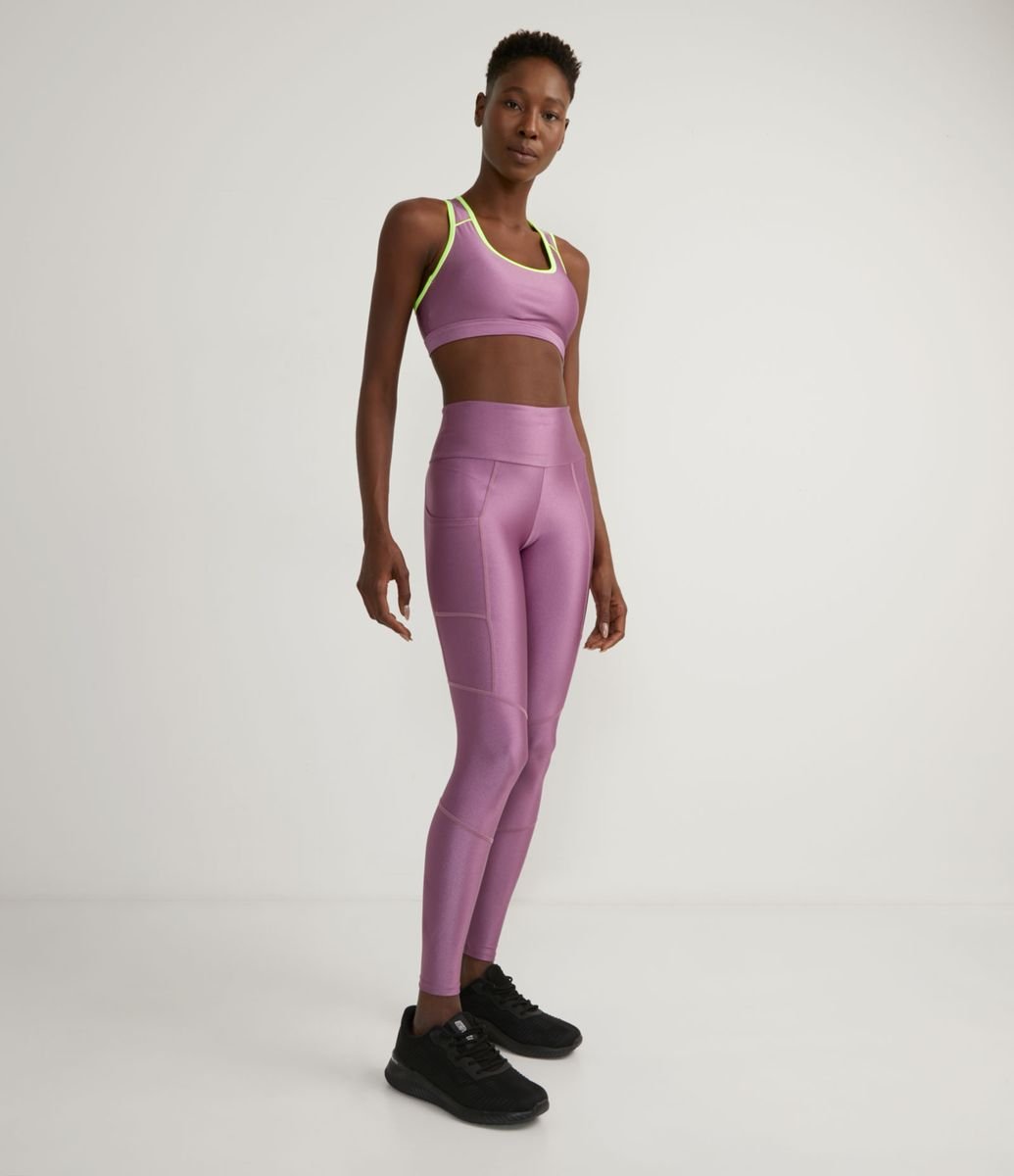 CALÇA LEGGING ESPORTIVA EM POLIAMIDA COM RECORTES E BOLSO LATERAL ROXO