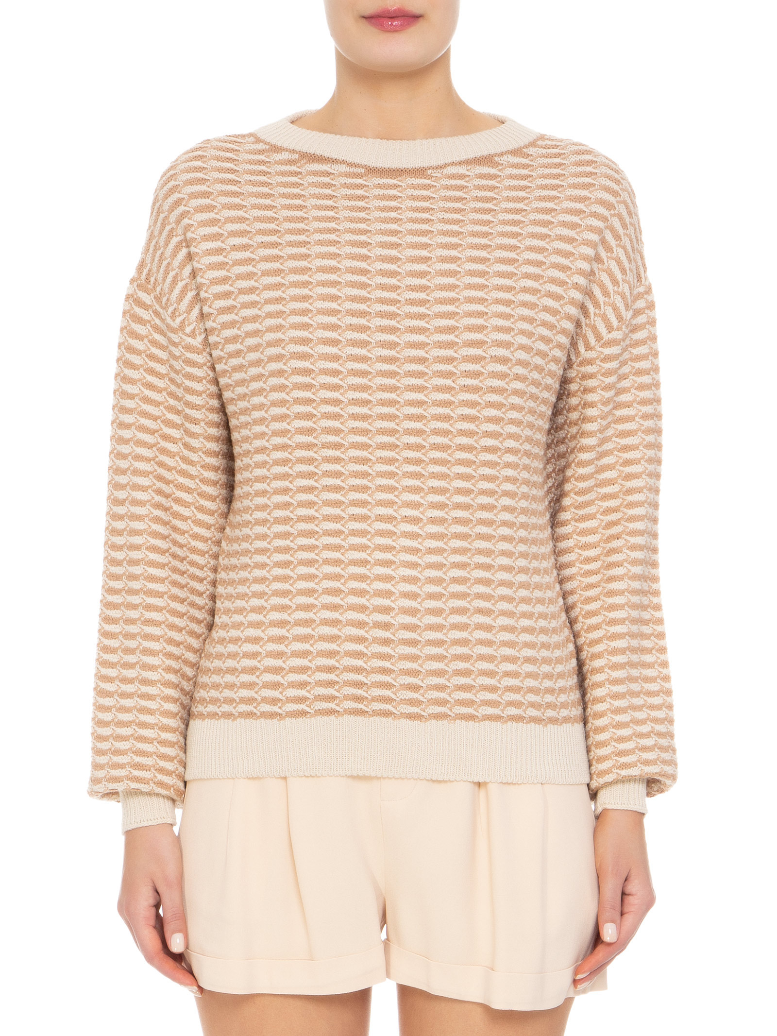SUÉTER FEMININO MANGA LONGA DE TRICOT BICOLOR