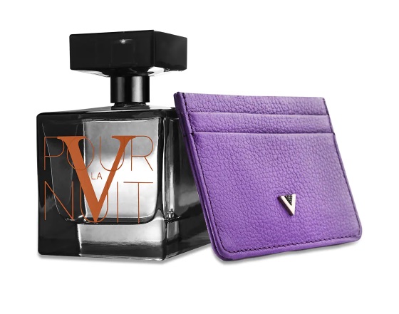 Conjunto Porta-Cartões Feminino Couro Purple e Perfume V Pour La Nuit 100ml