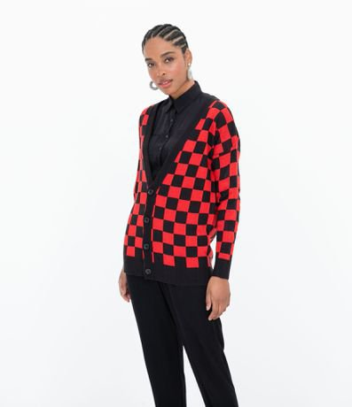 Cardigan em Tricô Estampa Xadrez Vermelho - Renner