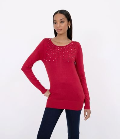 Blusa Lisa em Tricô com Brilhos Vermelho - Renner