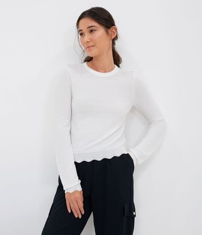 Blusa Lisa em Tricô com Ondas na Barra e Mangas Off-White - Renner