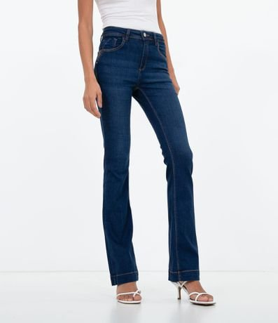 Calça Jeans Boot com Detalhes em Material Sintético Azul - Renner