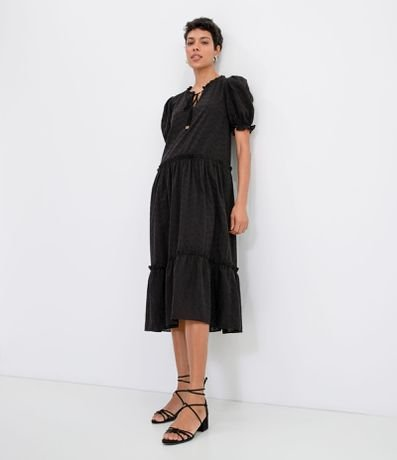 Vestido Midi em Laise com Babados Marias Comfy Preto - Renner