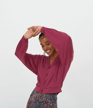 Casaco Curto Liso Texturizado com Botões Roxo - Renner