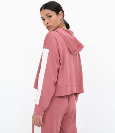 Blusão Esportivo Liso com Capuz e Faixa Lateral Rosa - Renner