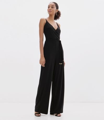 Macacão em Malha Sem Manga com Amarração na Cintura Preto - Renner