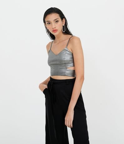 Blusa Cropped Sem Manga Metalizada Cinza - Renner