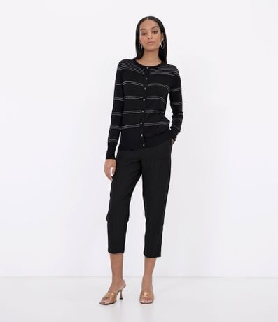 Cardigan Listrado em Tricô com Botões no Punho Preto - Renner