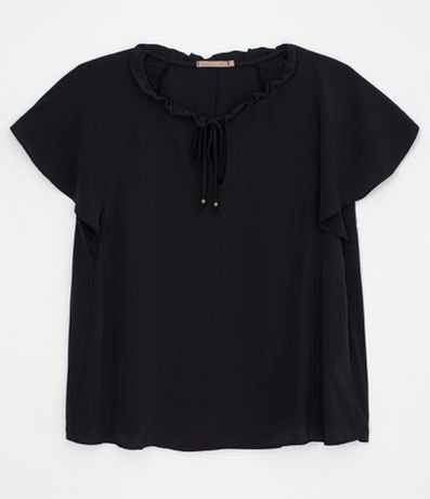 Blusa Manga Curta Lisa Decote com Babados e Amarração Curve & Plus Size Preto - Renner