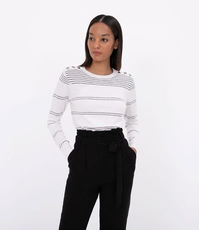 Blusa em Tricô com Detalhes em Metal no Ombro Branco - Renner