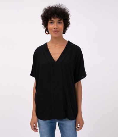 Blusa Lisa Gola V em Linho Preto - Renner