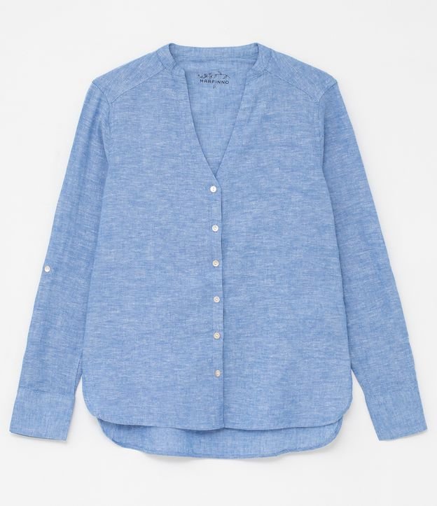 CAMISA MANGA LONGA LISA COM DECOTE V AZUL