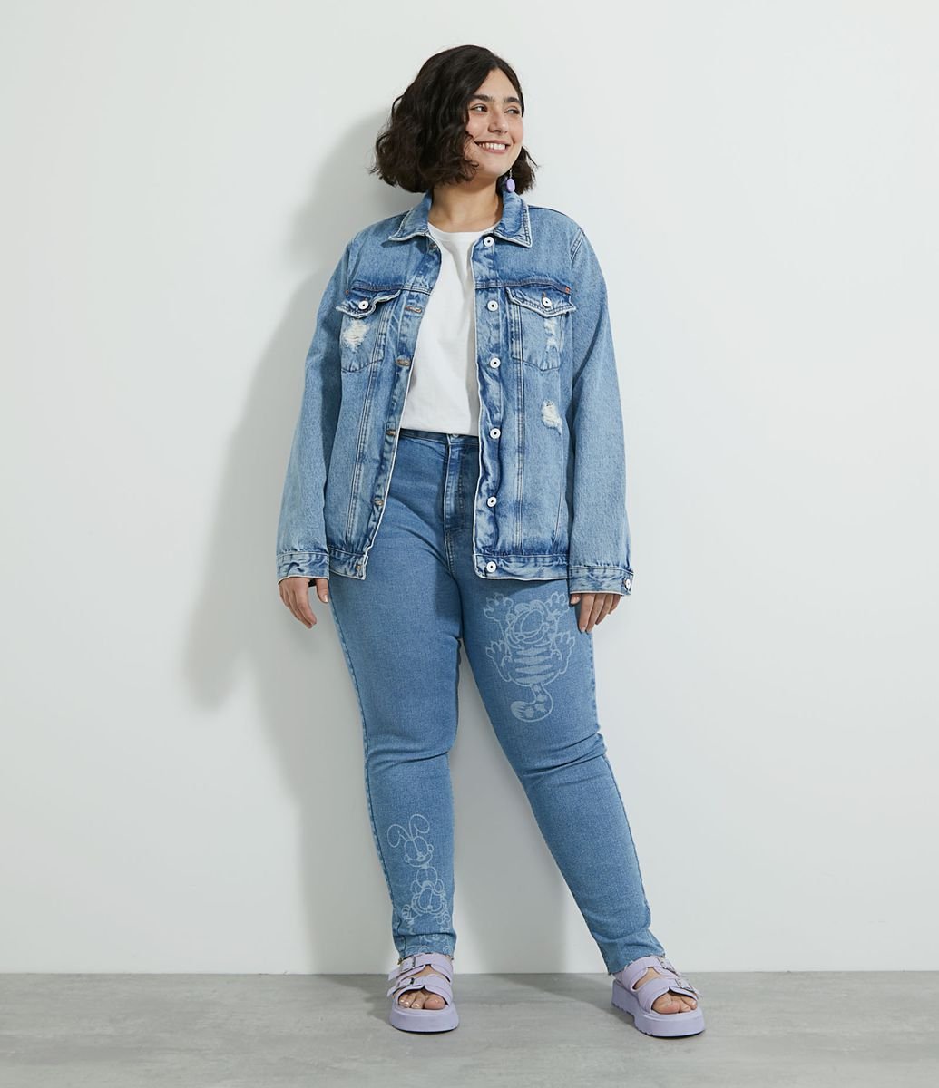 CALÇA SKINNY JEANS COM ESTAMPA GARFIELD CURVE & PLUS SIZE AZUL