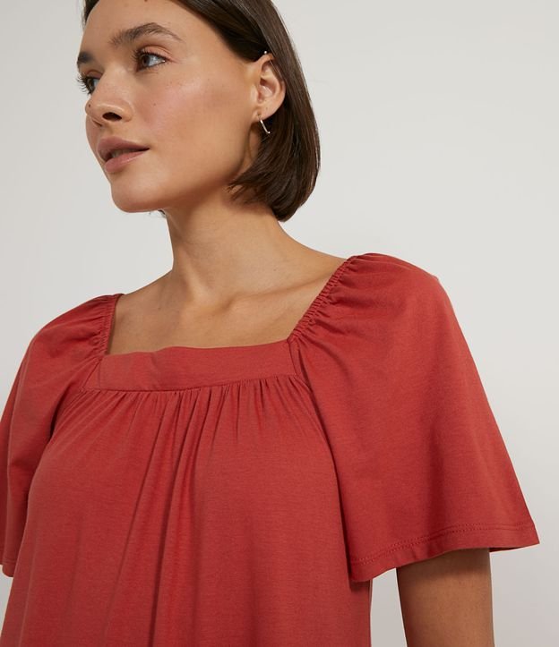 VESTIDO MIDI EM ALGODÃO COM MANGA CURTA BUFANTE E DECOTE QUADRADO VERMELHO