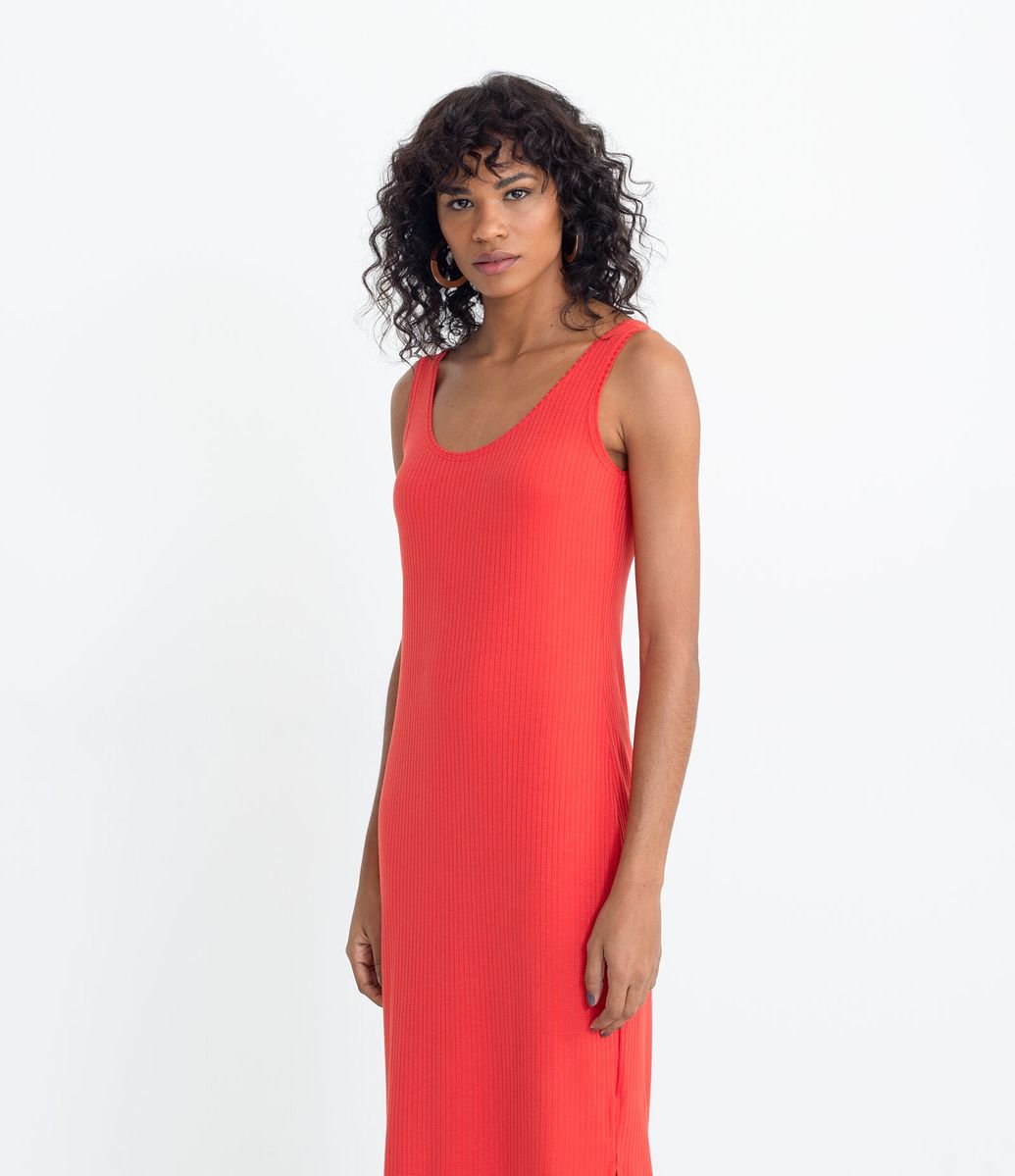 VESTIDO MIDI EM VISCOSE CANELADO SEM MANGAS VERMELHO