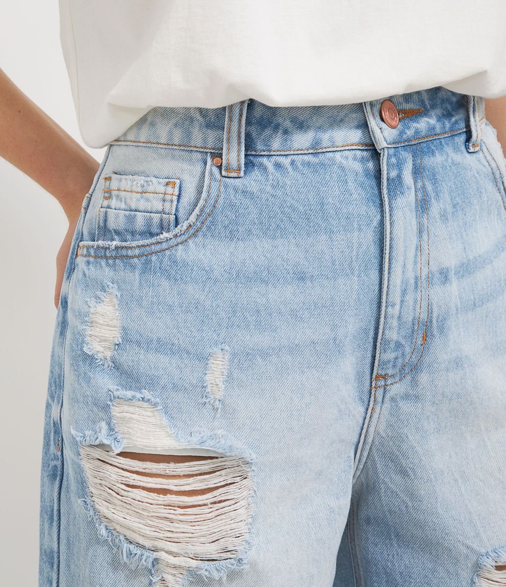 BERMUDA JEANS COM PUÍDOS E BARRA DESFIADA AZUL