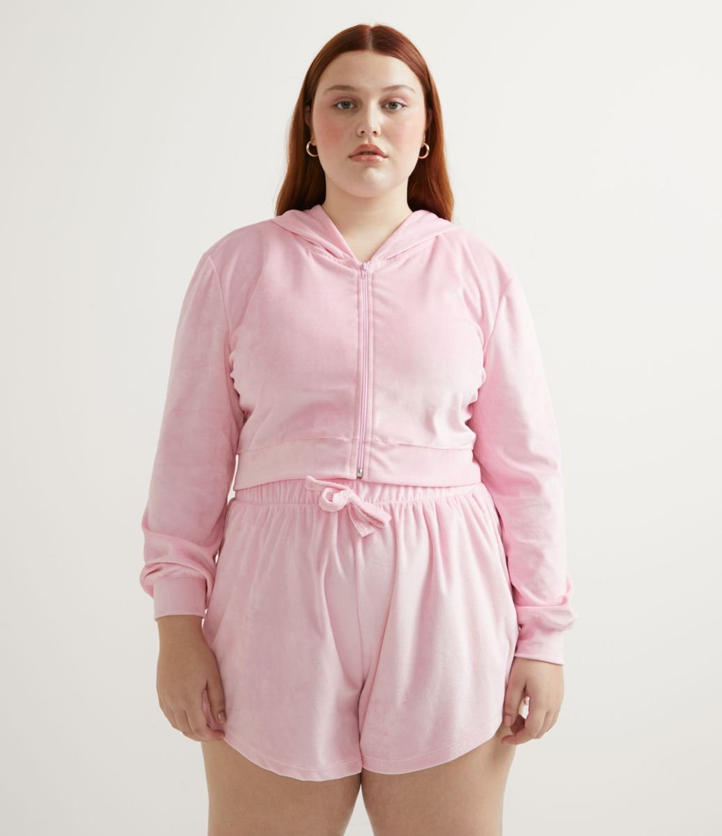 CASACO CANGURU EM PLUSH COM CAPUZ CURVE & PLUS SIZE ROSA