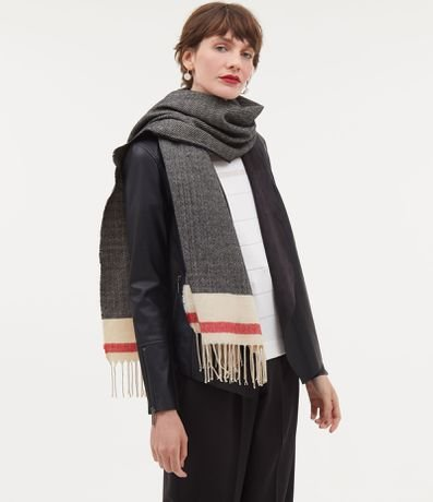 Cachecol Lisa com Detalhe na Barra e Franjas Multicores - Renner