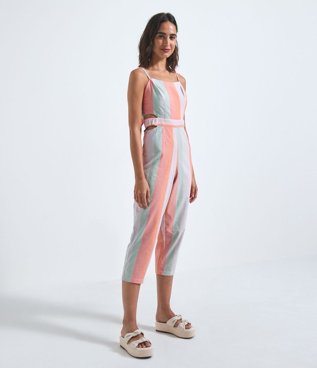 MACACÃO PANTACOURT ALCINHA LISTRADO COM DETALHE NAS LATERAIS MULTICORES