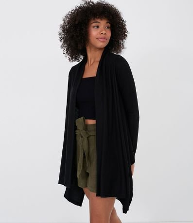 Casaco com Pontas Alongadas Liso Preto - Renner