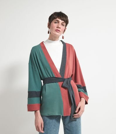 Kimono Manga Curta com Recortes Contrastantes Comfy Multicores - Renner