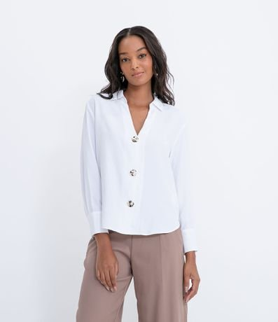 Camisa Manga Longa com Botões Contrastantes Branco - Renner