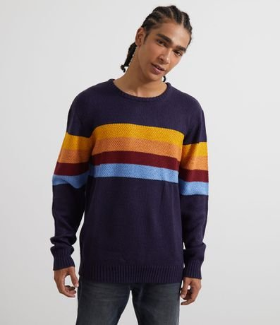 Suéter em Tricô com Listras no Peito Azul - Renner