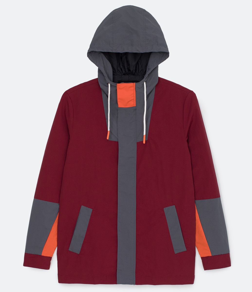JAQUETA EM POLIAMIDA COM RECORTES VERMELHO
