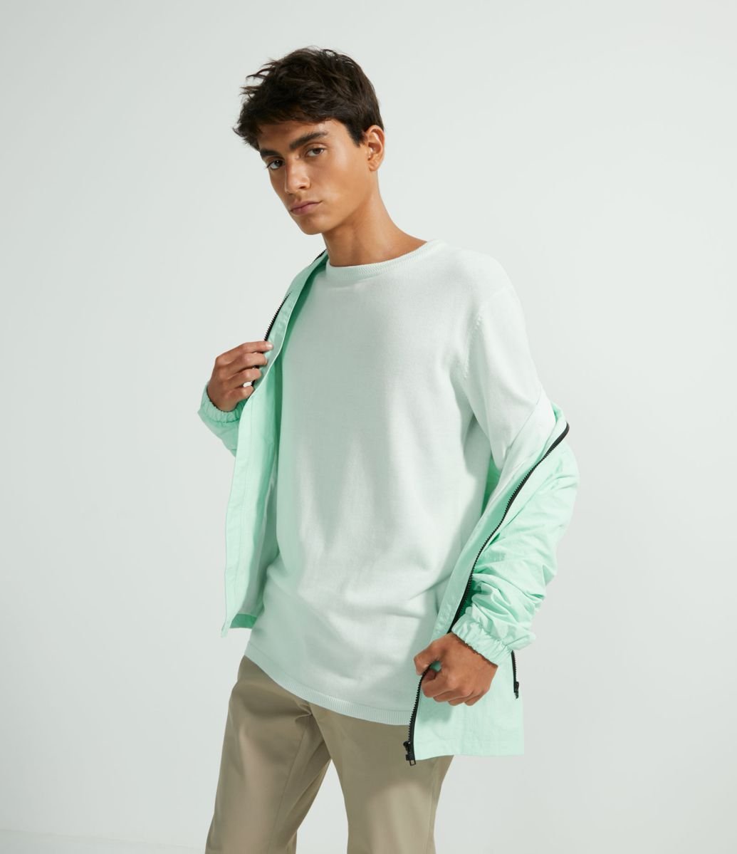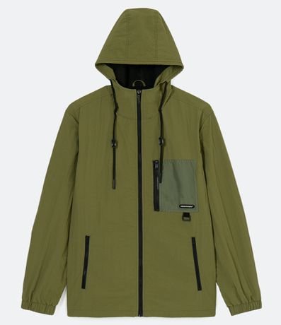 Jaqueta Em Poliamida Lisa Com Capuz Verde