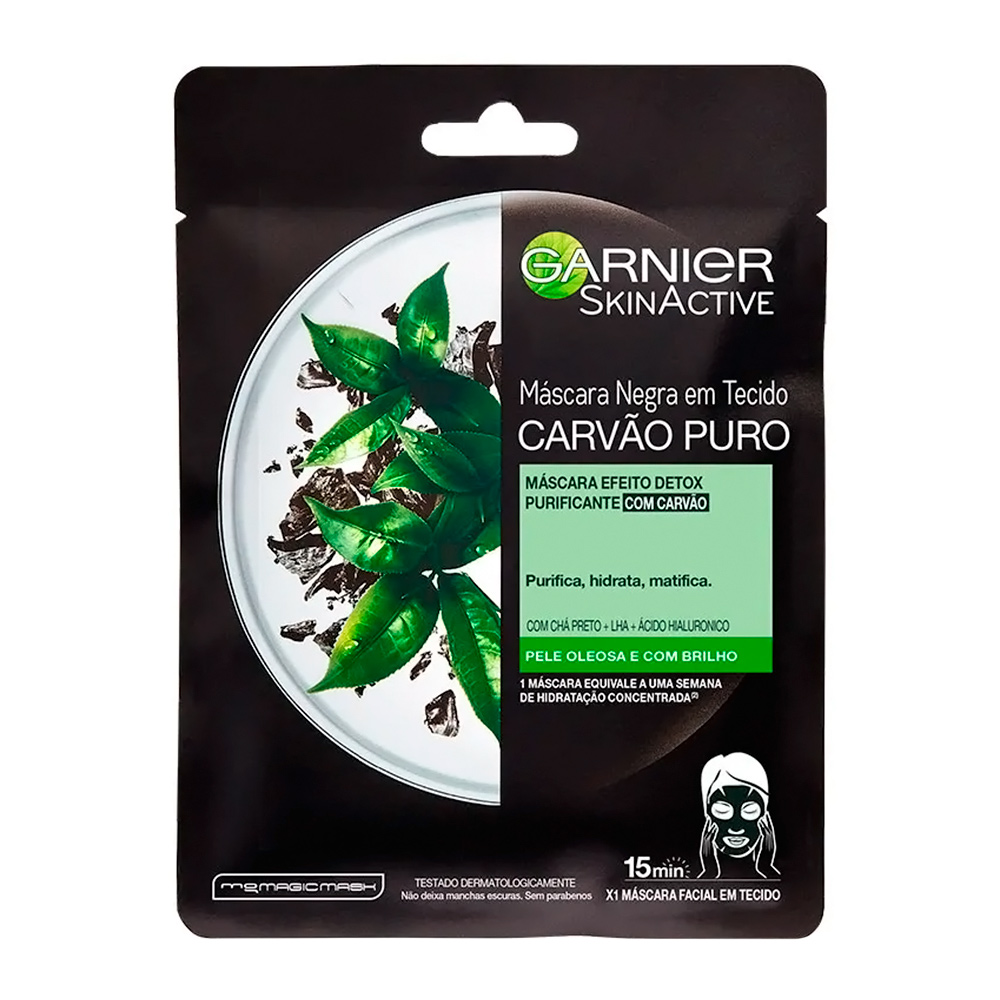 Máscara Negra Facial em Tecido Garnier SkinActive Carvão Puro 1 Unidade