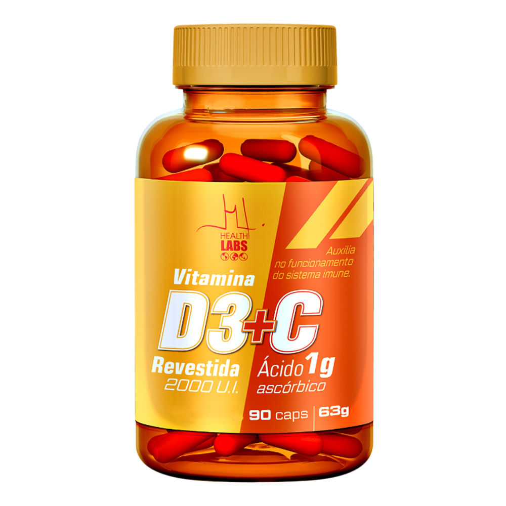Vitamina D3 2.000UI + Vitamina C 1g Health Labs 90 Cápsulas - Drogaria Araujo